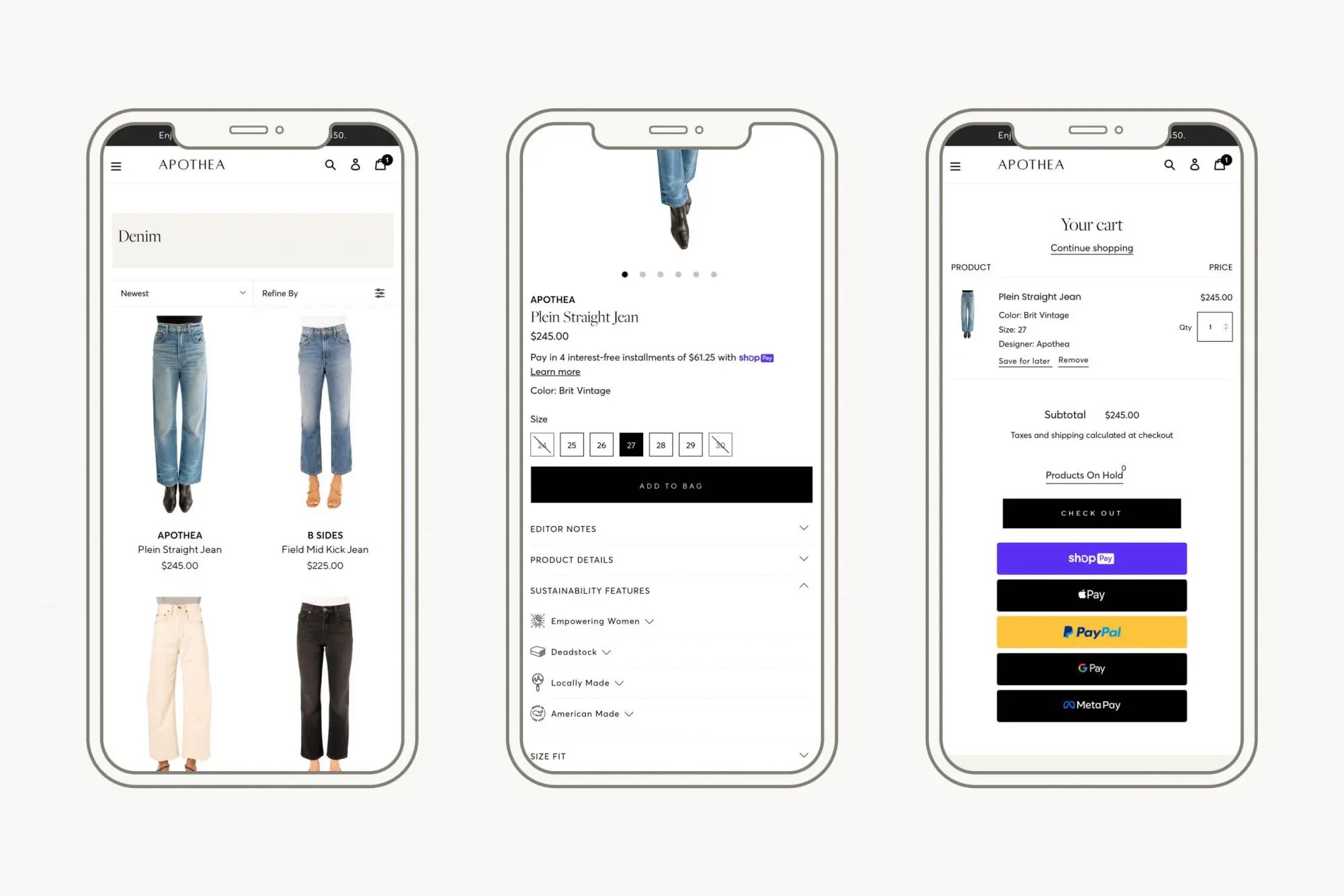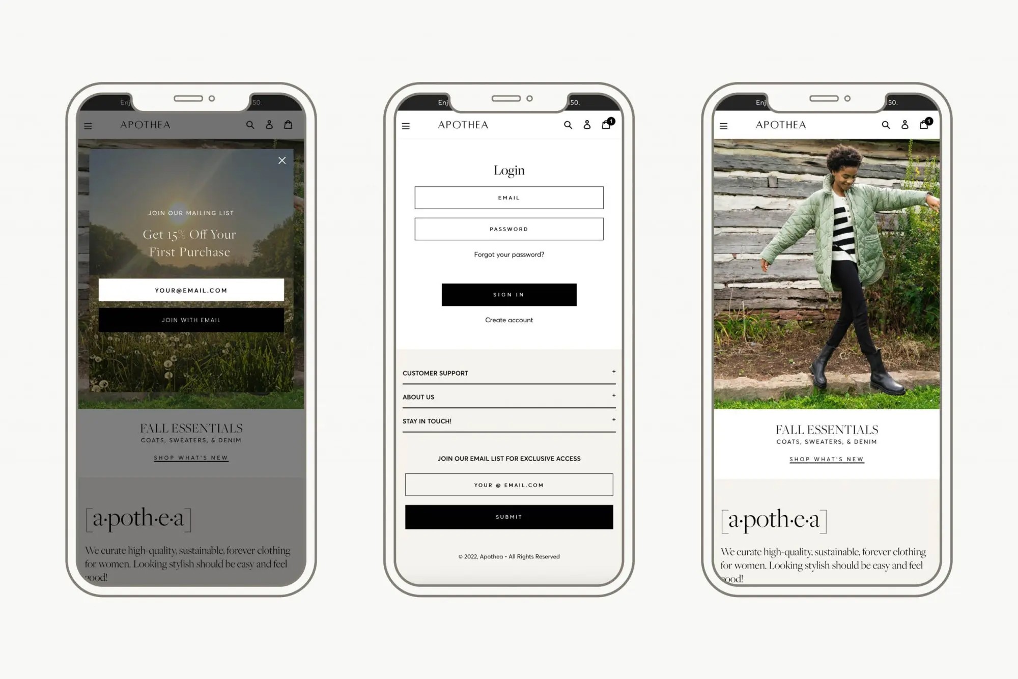 Brand Identity + Website Design for Apothea - A-poth-e-a // A cure for the aimless wardrobe. 🧵 High-quality, sustainable, forever pieces for women.