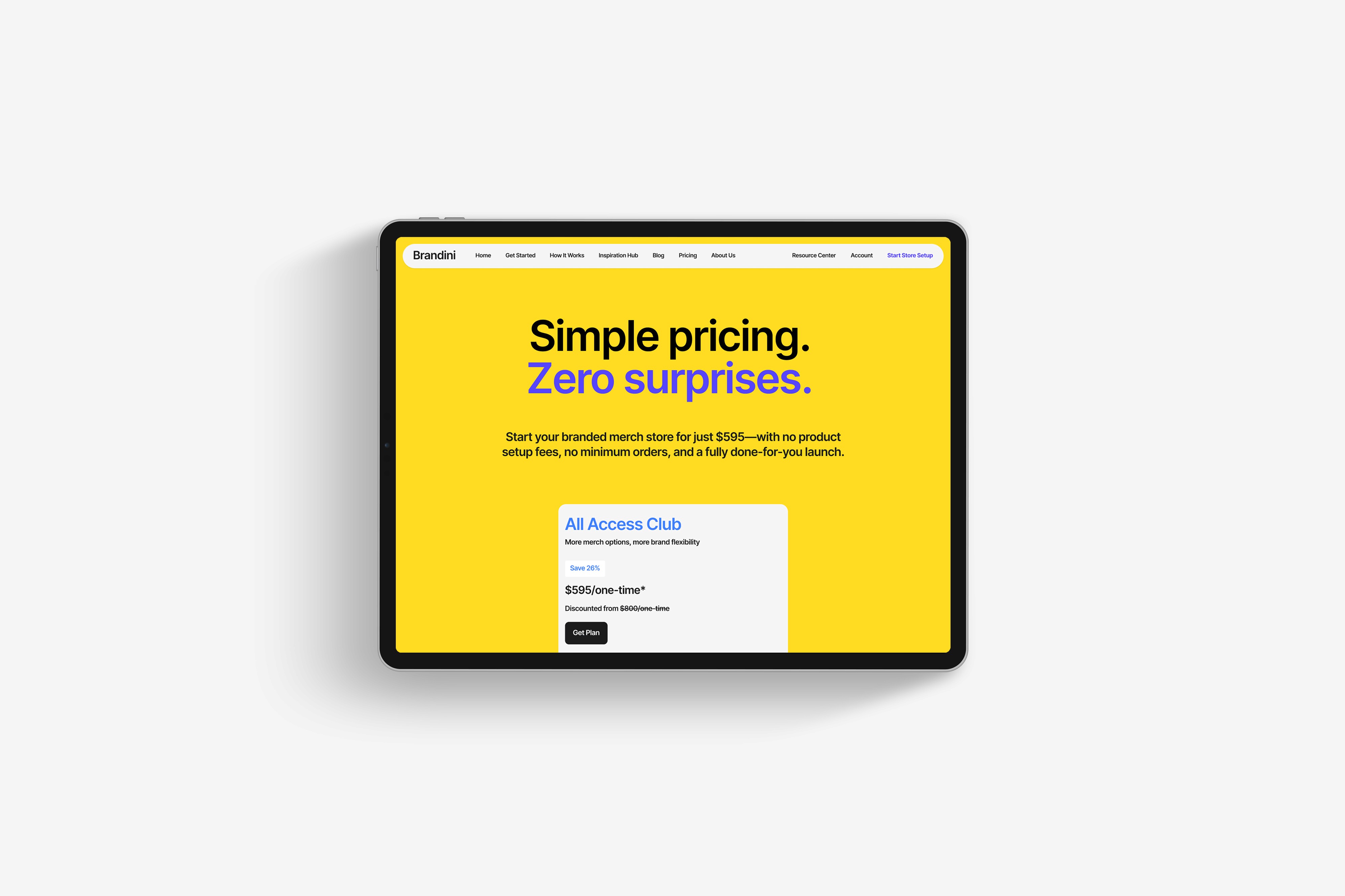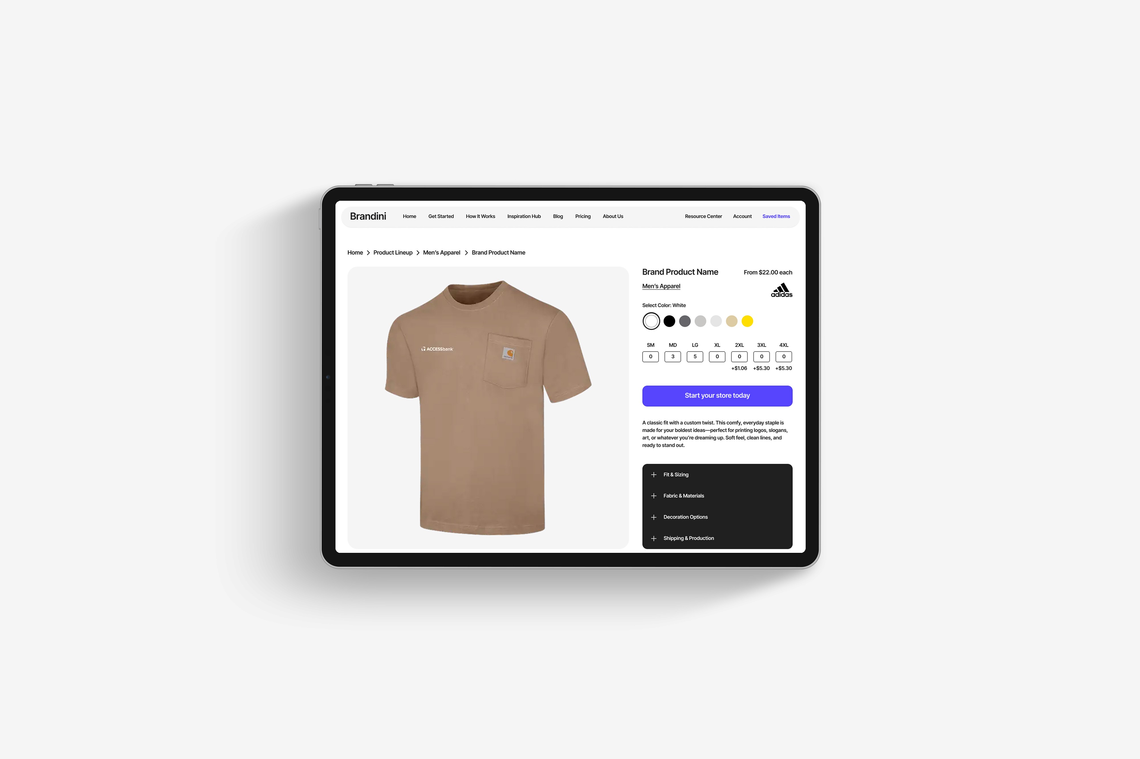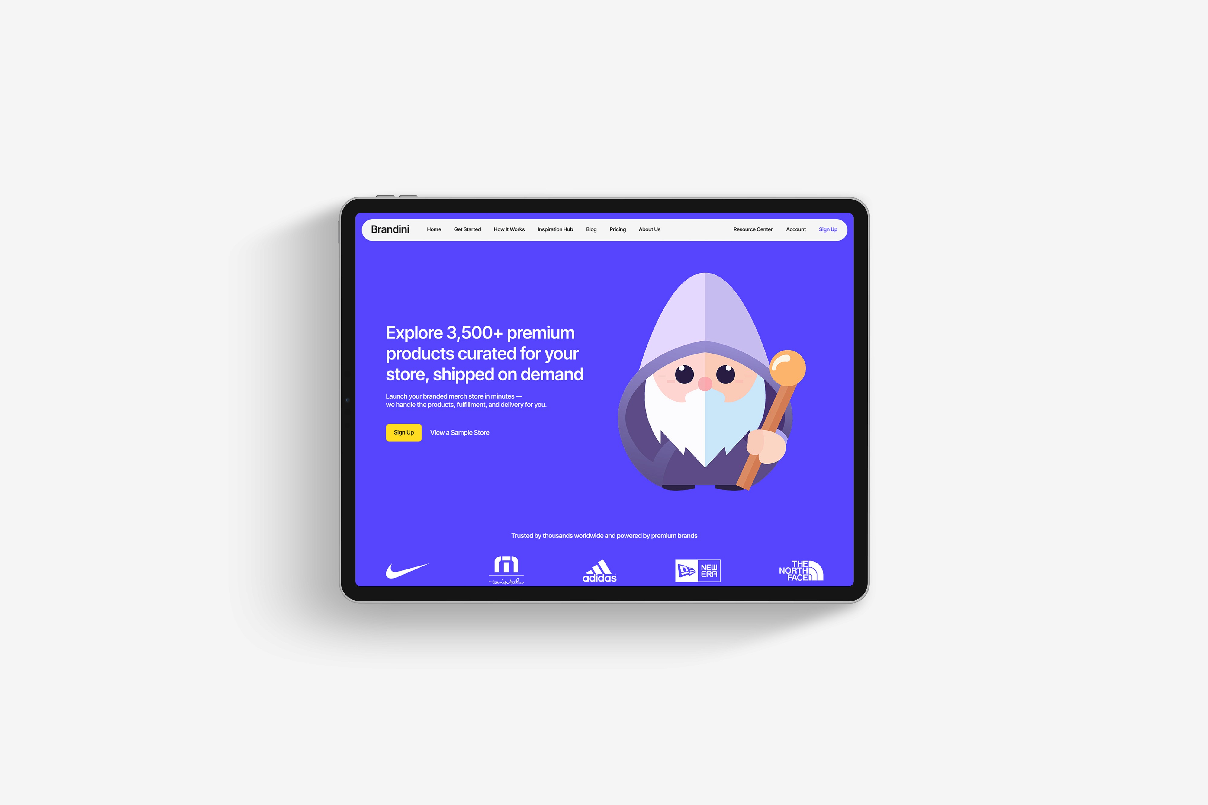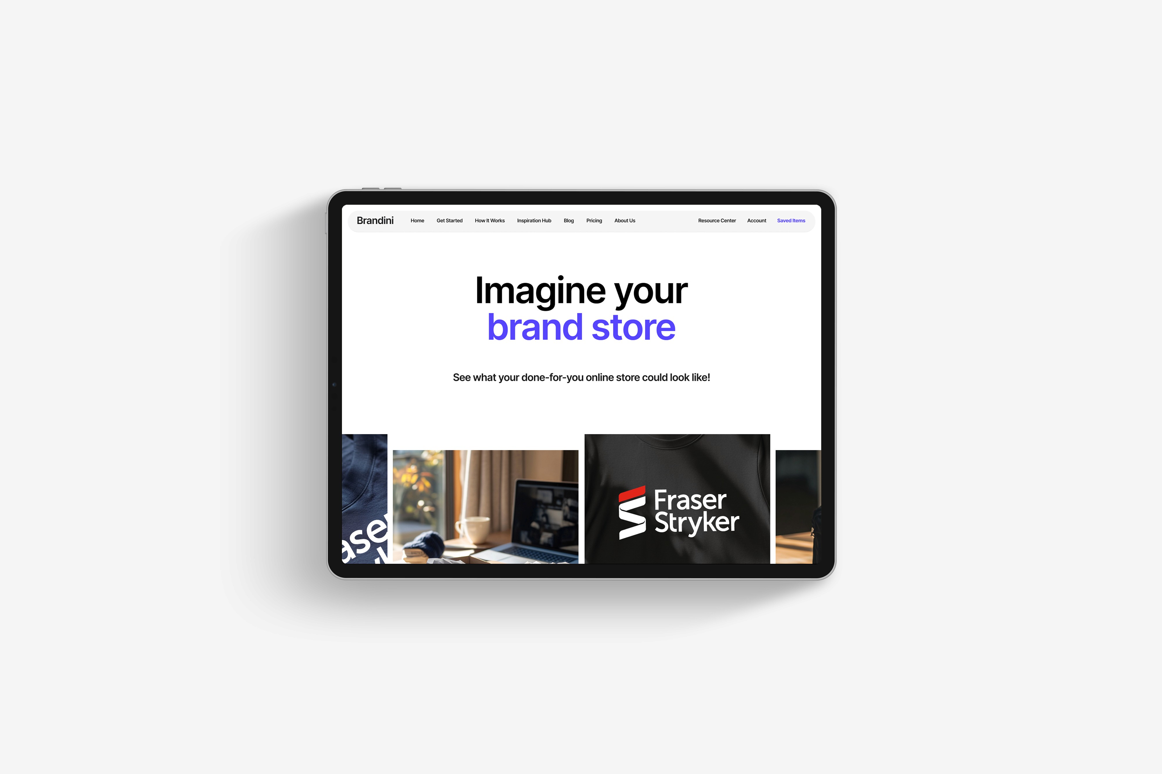Naming + Brand Identity + Website Design for Brandini – Bran-di-ni // On-demand custom merch ⚡ No minimums. No bulk. Just your brand, brought to life.